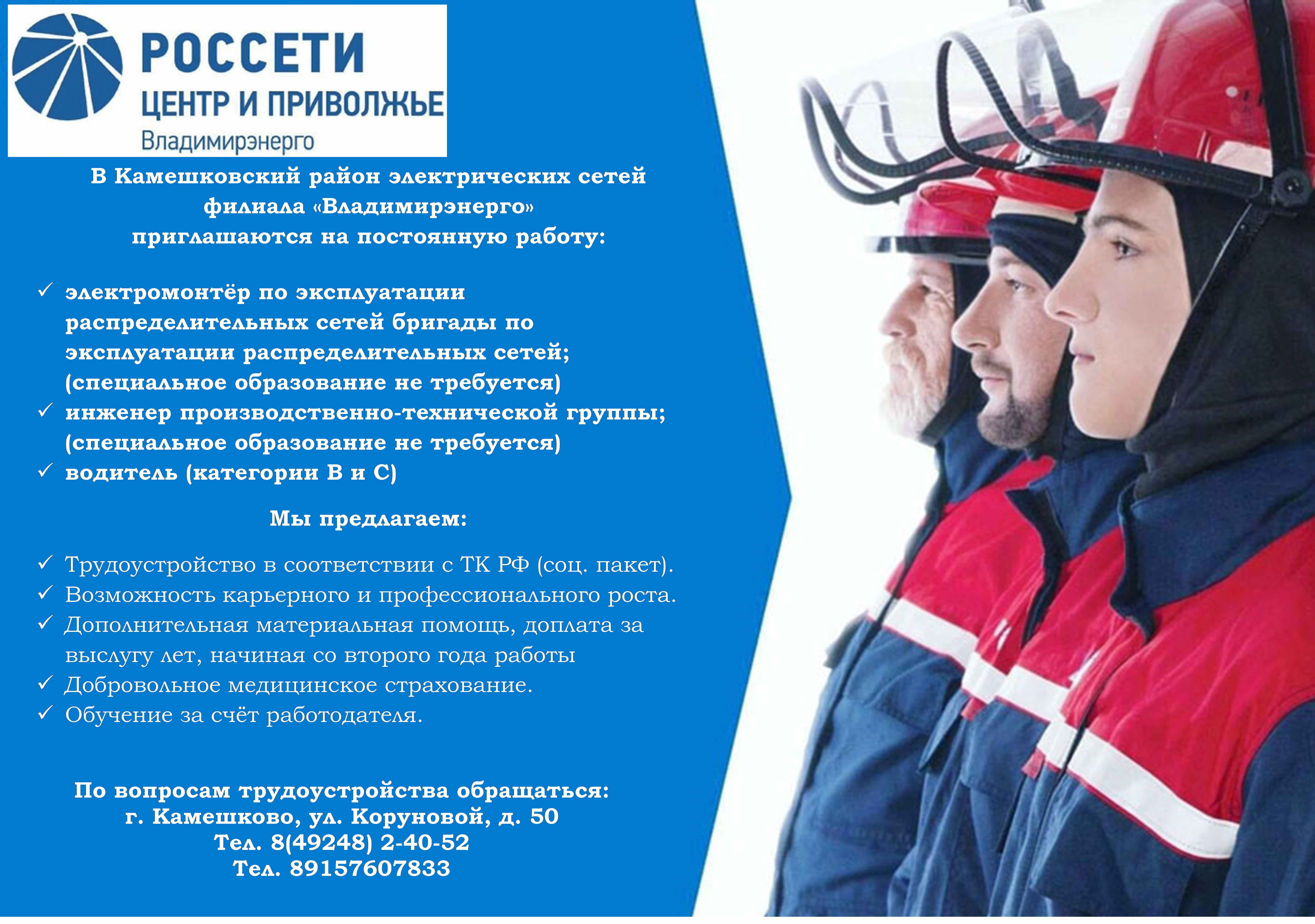 Вакансии в Камешковском РЭС филиала «Владимирэнерго»
