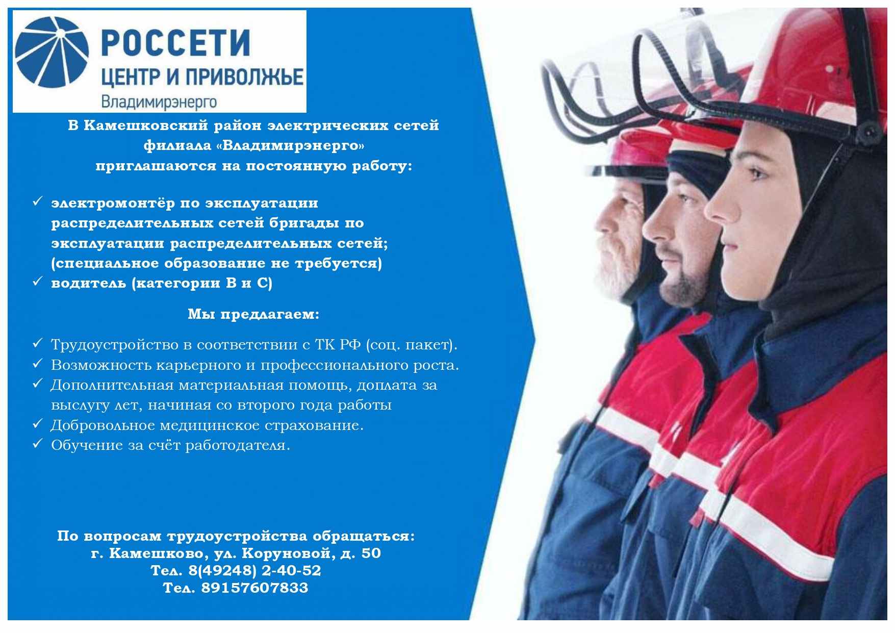 Вакансии Камешковского РЭС «Россети Центр и Приволжье»